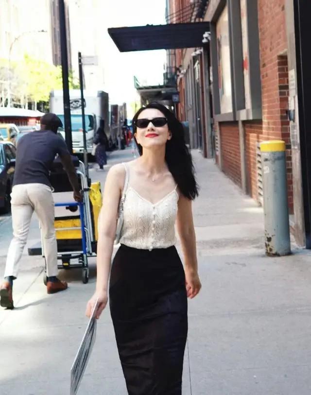 现实生活当中,其实很少有中年女人敢尝试吊带,大多数都会当成内搭,但是高圆圆却偏爱单穿,下身搭配包臀款式的长裙,直接秀出好身材,整个人都洋溢着自信阳光的状态。