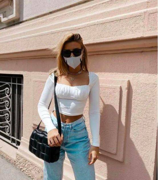 紧身的牛仔裤虽然对于腿部线条很完美的妹子来说是可以凸显优点的,但是紧身裤穿不好的话容易显得头重脚轻的视觉效果,看起来身材比例就会失衡。