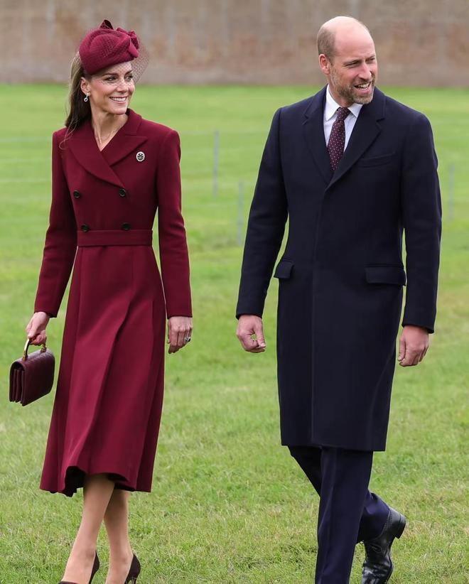 这一身酒红色的收腰裙,也很符合她的气质和审美,凯特王妃的穿搭几乎从来不会出错,也代表了凯特式优雅。