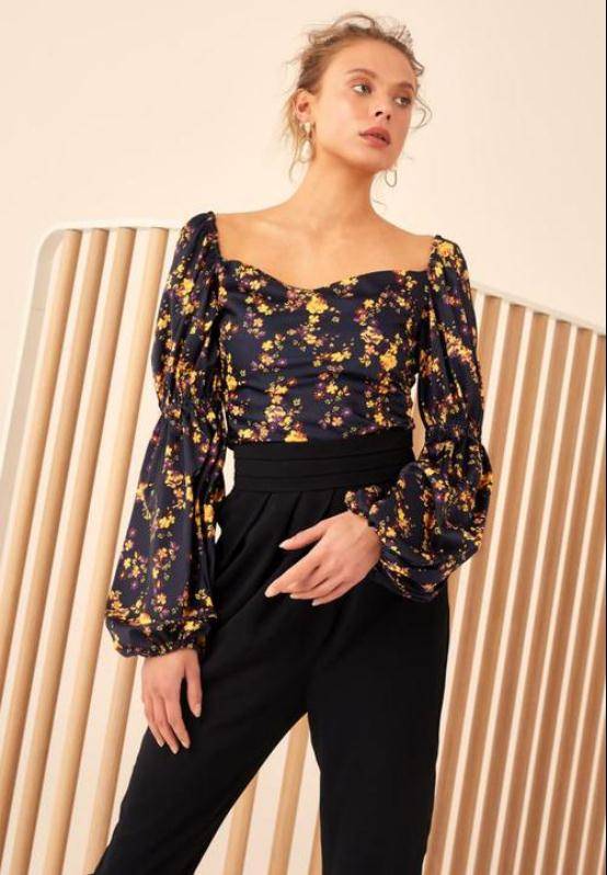 法式风格一般是“方领+灯笼袖”的搭配,但是近几年来我们也可以看到方领上衣也在渐渐的发生着变化,演变出了法式独特的性感风格。
