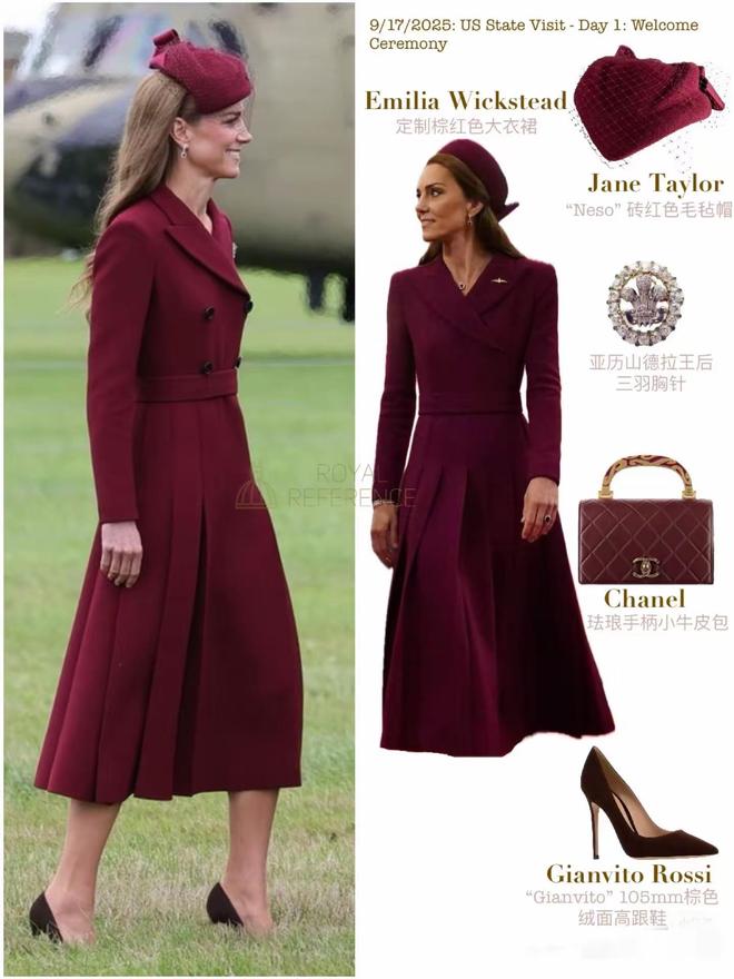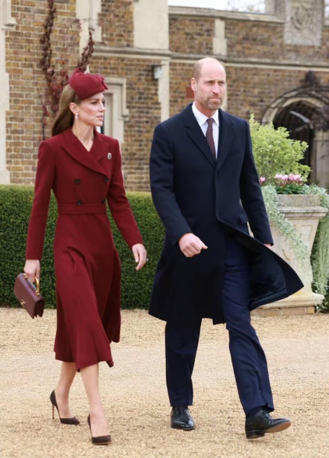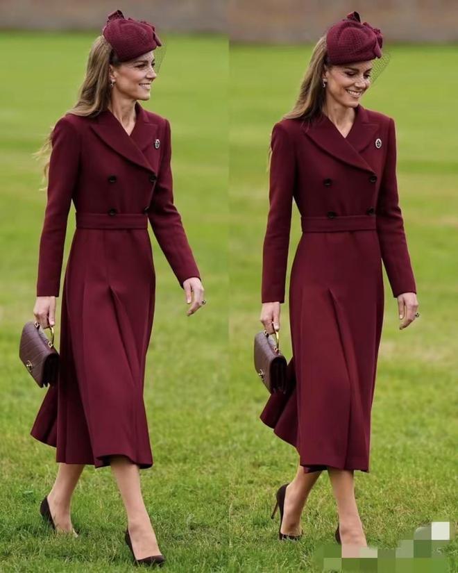 这一身酒红色的收腰裙,也很符合她的气质和审美,凯特王妃的穿搭几乎从来不会出错,也代表了凯特式优雅。