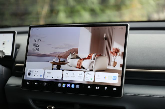 舒适配置:座舱采用Microcloud 纤维绒皮革材质,触感柔软细腻,且透气性优异 —— 实测数据显示,夏季暴晒后,该材质座椅表面温度比传统皮质低 8-10℃,避免 “烫” 尴尬。全系标配 2.34m² 全景天幕,搭配电动遮阳帘,既能让车内保持通透采光,又能隔绝 90% 以上的紫外线;后排乘客可通过独立控制面板调节天幕开关,兼顾个性化需求。此外,车内搭载 PM2.5 过滤系统与负离子发生器,可实时净化空气,过滤效率达 95% 以上,为老人、儿童营造健康的乘车环境;双区自动空调支持主副驾独立调温,进一步提升乘坐舒适度。
